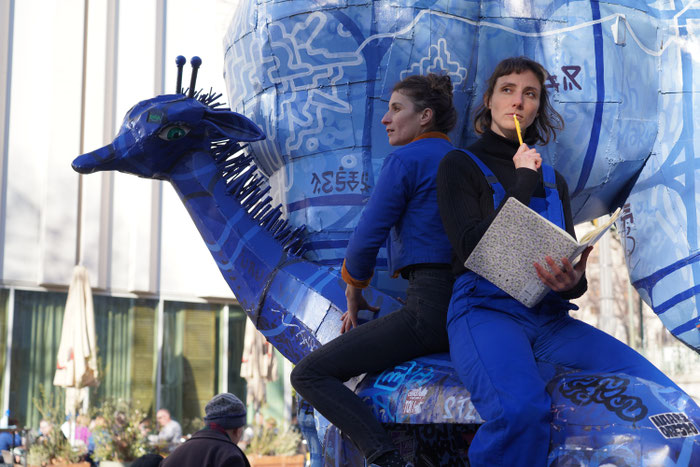 Nous faisons des tours et des détours, crayons à la main. En marchant, nous cherchons à nous déplacer dans l'écriture, grâce aux contraintes qui pour nous sont libératrices. Nous nous embarquons dans des raisonnements absurdes et tout à fait sérieux.